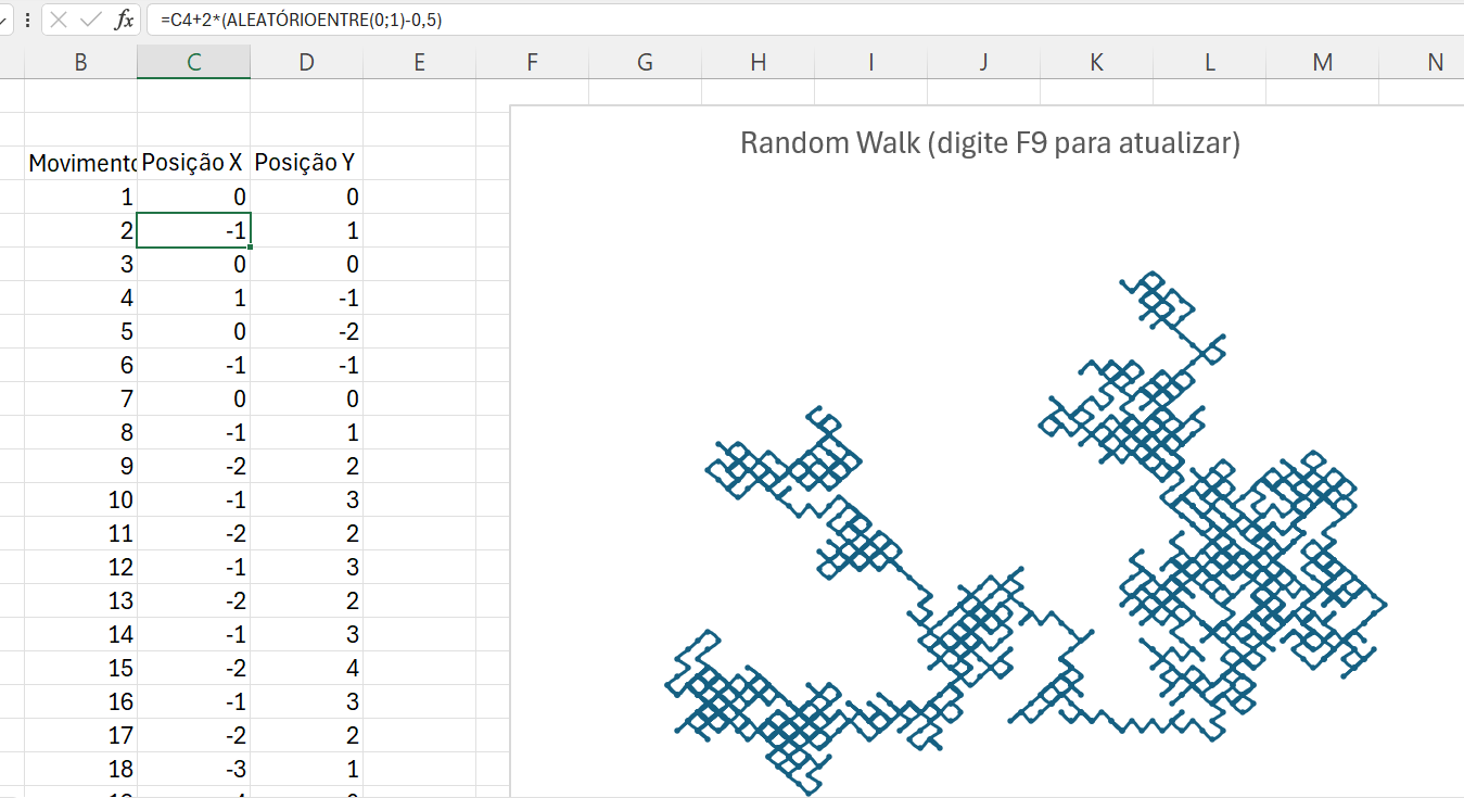 Podemos simular facilmente um random walk numa tabela Excel.
