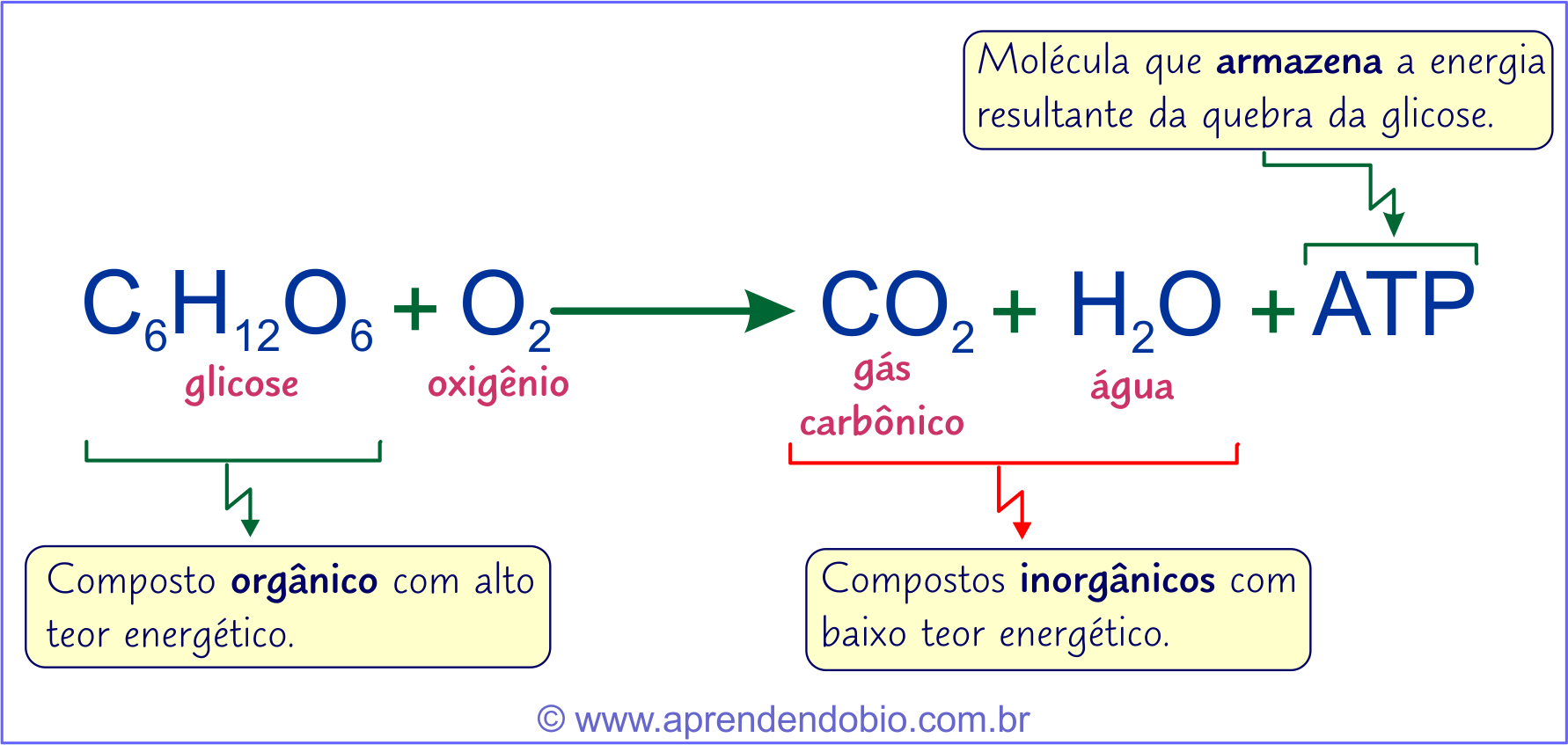 Uma equação mais completa, do site https://aprendendobio.com.br/tag/respiracao/, é dada por: