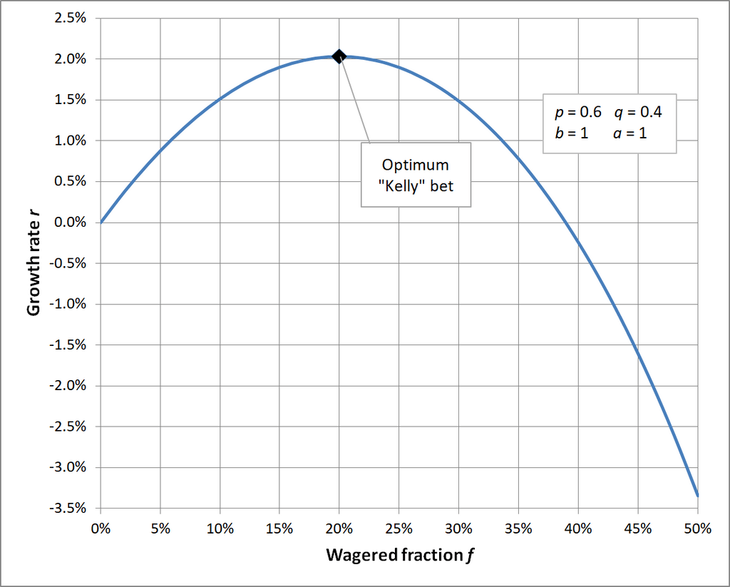 Este é o Kelly fracionário. Digamos, 25%, ou 50% do valor calculado, dependendo do apetite de risco da pessoa.