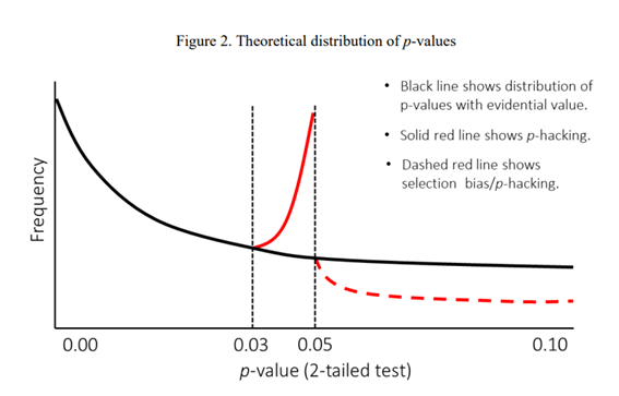 Um artigo interessante é o “P-hacking in Top-tier Management Journals”, por Joel A.C. Baum and Philip Bromiley. Eles analisaram dados de revistas de prestígio (Academy of Management Journal, Administrative Science Quarterly)