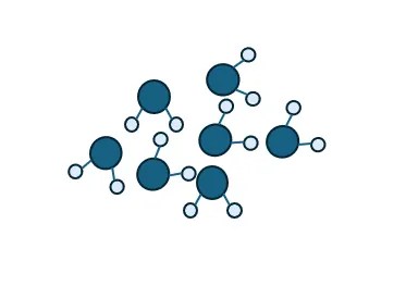 No formato de líquido, o movimento é menor, e a força de atração das pontes de hidrogênio seguram algumas moléculas de água umas nas outras.