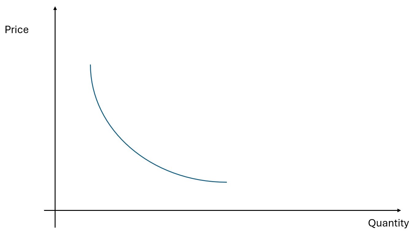 Imagine uma curva de preço e produção clássica de economia para uma indústria, como a seguinte.