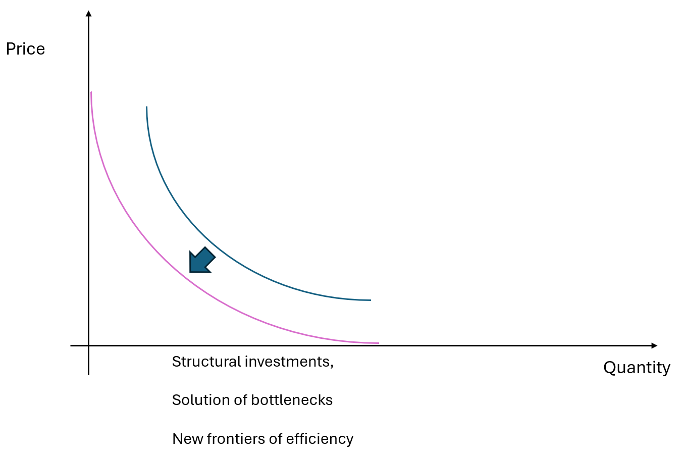 Já um investimento grande em uma nova fábrica, ou em algum aspecto chave da indústria (como terras disponíveis para plantio) ou para desgargalamento de produção, vão fazer a curva mudar bastante, será uma nova fronteira eficiente – basicamente, uma outra curva.