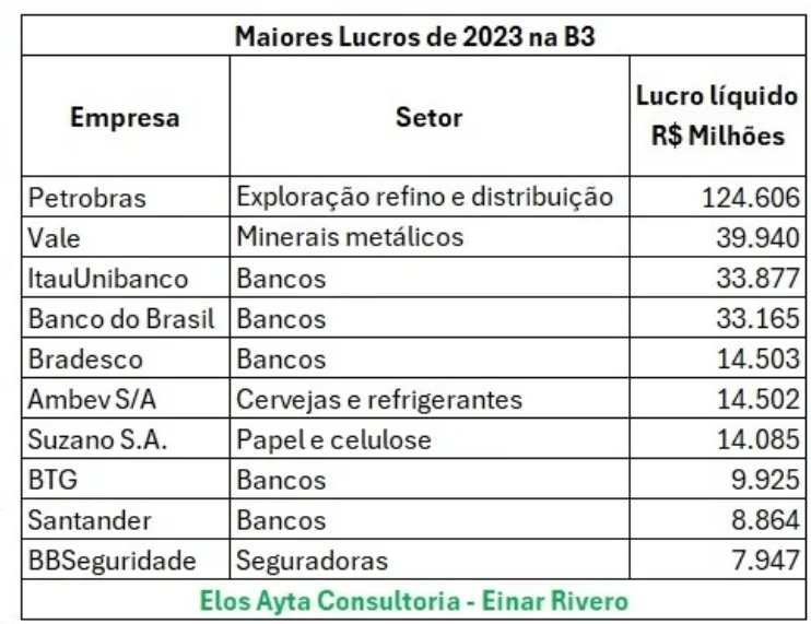 O Brasil é uma país de commodities e de bancos. Para mostrar este ponto, basta dar uma pesquisada em listas como as seguintes, e verificar que Petrobrás, Vale, JBS, Itaú, Bradesco, Banco do Brasil, etc, estão na lista.