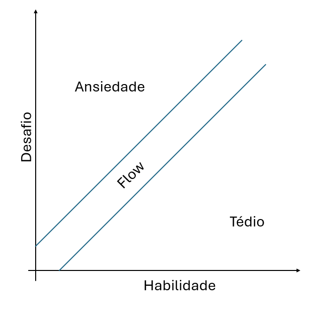 Se a atividade é muito fácil, você fica entediado. Mas se está na medida certa, você entra nesse estado de flow e sente prazer em fazer a atividade.