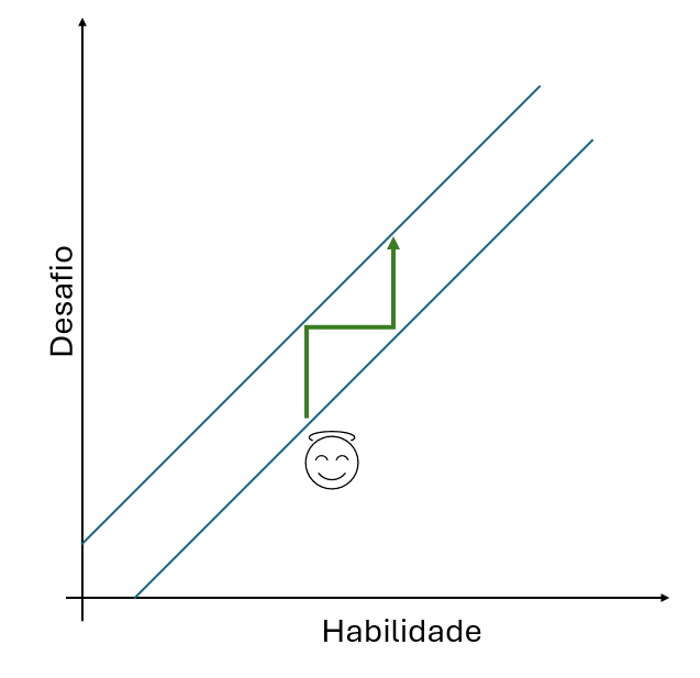 Qual seria o nível ideal? É fazer uma atividade que o desafie, que esteja um pouco acima do seu nível de habilidades. A habilidade vai melhorando, aí é hora de subir novamente o nível do desafio.
