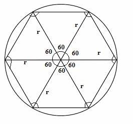 A área de um círculo é dada por pi*r^2. Não queremos saber a área de um círculo todo, queremos apenas 1/6 da área total, já que o triângulo equilátero que ângulos de 60o.