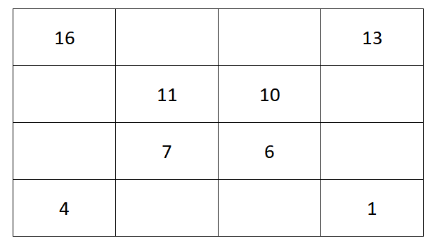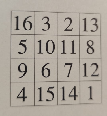A resposta é que é um quadrado mágico 4×4. A soma de todas as linhas, colunas e diagonais principais dá o mesmo valor (no caso, 34).