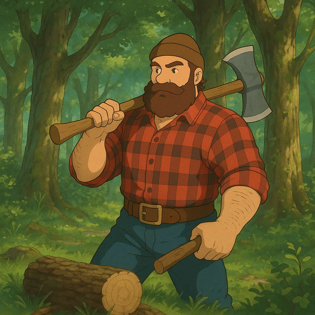 Três lenhadores decidiram competir para ver quem conseguiria derrubar mais árvores em um dia.