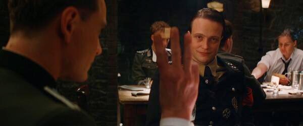 Me senti, imediatamente, numa cena do filme Bastardos Inglórios, do genial Quentin Tarantino. Há uma cena extremamente tensa, num pub alemão, em que um espião se passa por oficial nazista – porém, o alemão dele não era perfeito, e outro oficial nazista estava desconfiado. Toda a cena tem muito, muito diálogo e tensão (como ocorre em vários dos filmes de Tarantino), com o espião se esquivando e o nazista desconfiado. Até, que, no clímax da trama, o espião pede três cervejas fazendo o sinal “três” do jeito britânico, e não do jeito alemão: dessa forma, ele revela claramente que não é alemão e dando origem a um belo tiroteio!