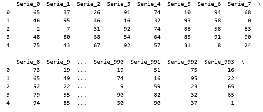 Este código gera 1000 séries aleatórias de 50 valores cada.