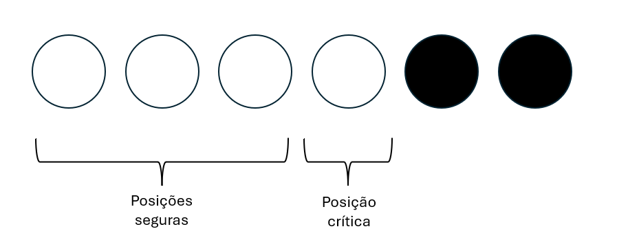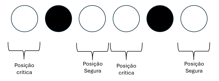 Isso porque serão duas as posições críticas, e apenas duas posições seguras. Chance de sobrevivência de 50%.
