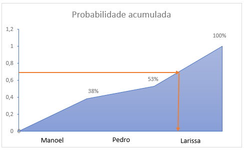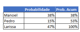 No caso, se for de 0 a 38% é o Manoel, de 38% a 53% Pedro, e acima de 53% Larissa.