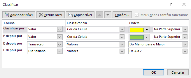 Existem opções mais avançadas, como classificar por cor: