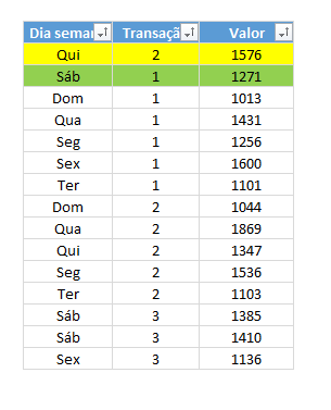 Digamos que eu tenha a tabela a seguir.