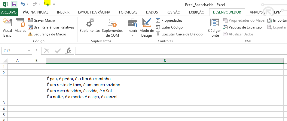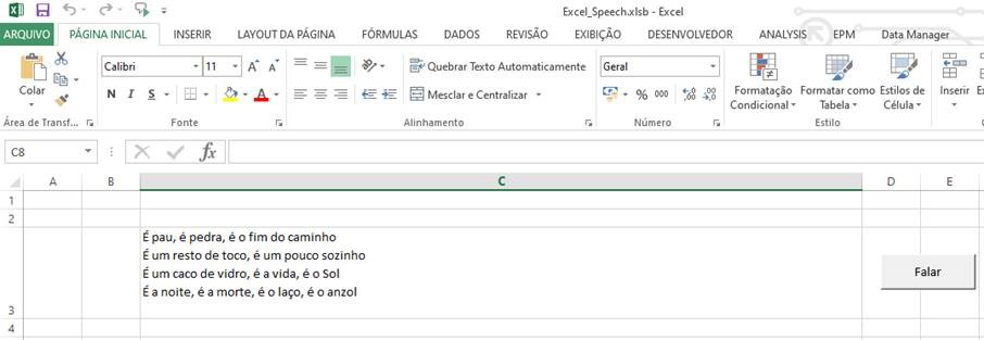 Faça o Excel cantar em Português