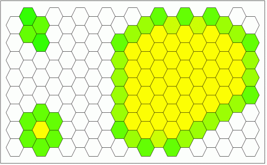 Inspirado no Jogo da Vida normal, porém com células hexagonais.