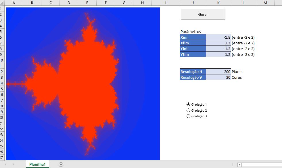 Crie os seus próprios fractais de Mandelbrot no Excel: https://github.com/asgunzi/vbaMandelbrot