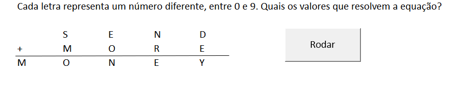Como resolver computacionalmente este puzzle? https://ferramentasexcelvba.wordpress.com/2019/05/27/send-more-money/