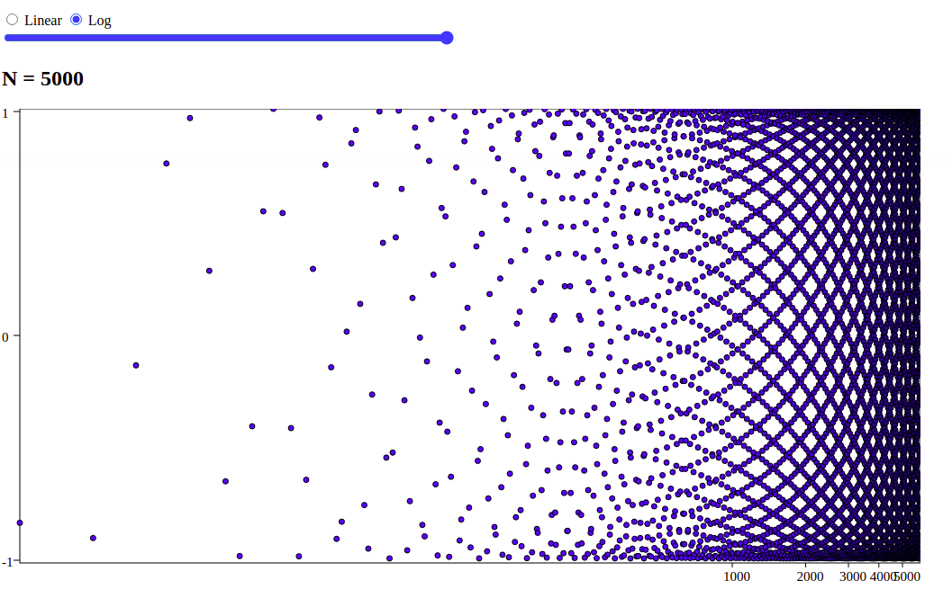 Um padrão interessante surge, quando plotamos senos de inteiros:
