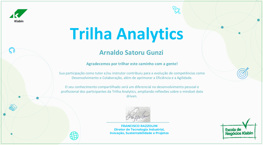 Agradeço pelo reconhecimento como um dos tutores (e líderes) da Trilha Analytics Klabin 2023. Foram 35 analistas, de todas as áreas de negócio da empresa, aprendendo tópicos que foram de Estatística e Storytelling com Dados, passando por Excel e Power BI, até chegar a VBA e Python para Data Science. Como trabalho final, os participantes …