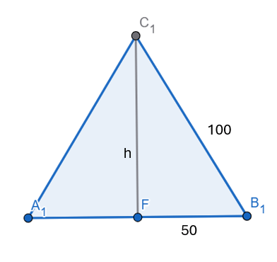 Enunciado O Sr. Smith tem uma área no formato de um triângulo equilátero, de lado 100m. Ele quer prender a sua vaquinha num dos lados do triângulo. A vaca terá uma corda, que limitará o máximo possível que ela pode alcançar dentro da propriedade. Qual o raio da corda, de modo que a área da …