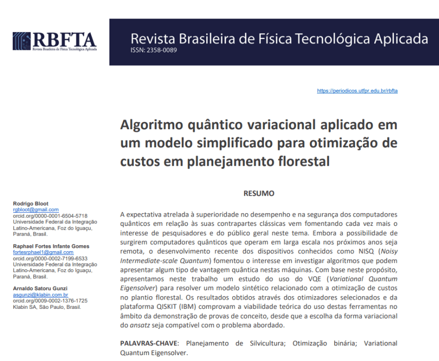 Como unir a complexidade da Computação Quântica com aplicações práticas na indústria? Recomendo o artigo que publiquei recentemente em colaboração com os professores doutores Rodrigo Bloot e Raphael Fortes: "Algoritmo quântico variacional aplicado em um modelo simplificado para otimização de custos em planejamento florestal", publicado na Revista Brasileira de Física Tecnológica Aplicada. Leia o artigo …